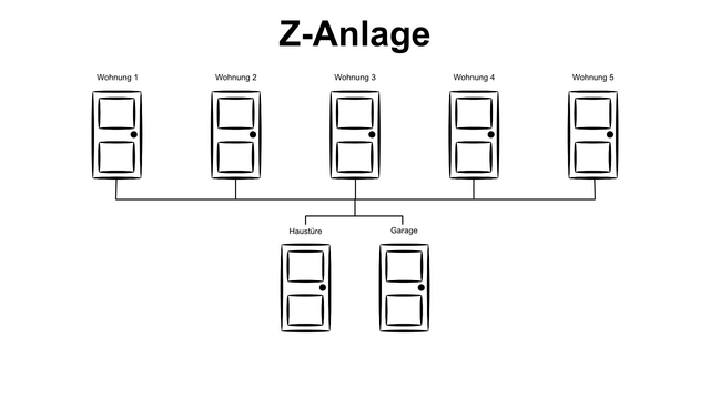 Jeder Bewohner kann mit seinem Schlüssel die eigene Wohnungstüre und Gemeinschaftstüren, wie z.B. die Haustüre oder das Garagentor öffnen, jedoch nicht die Wohnungstüre der anderen Wohnungen.