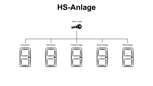 Der technische Leiter hat in diesem Fall einen Hauptschlüssel und kann mit diesem alle Zylinder der Anlage schließen.